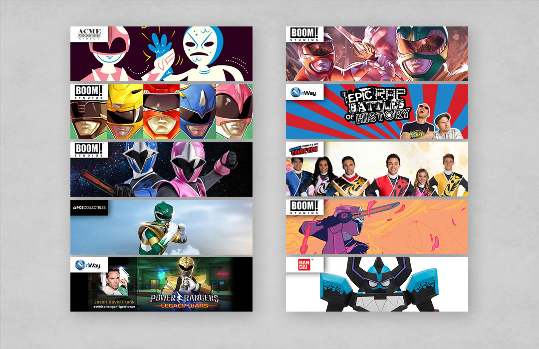 As part of the marketing campaign for Saban Brands' Power Rangers movie, the brand partnered with different teams handling merchandises and publications in association with the franchise in other media: game studios, toymakers, and comic book publishers. At the 2017 New York Comic Con, more than 12 partners were available on site to promote activities, limited-time events, giveaways, and featured guest stars.